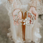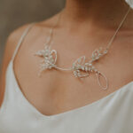 A lot of my hair accessories are designed and made to be worn in several different ways, for example, I have hair vines that can be worn as a necklace or as a delicate belt and I have headpieces that are designed to be worn as a hair accessory or a statement necklace. Most of my crowns work equally well as a statement neckpiece as they do a headdress. My precious metal leaf hair pin designs can be converted into earrings or a pendant after the wedding. I can also design bespoke pieces that can be converted to a piece of jewellery afterwards so if this is something that you’re interested in, please contact me and I can design you a multi purpose beautiful headpiece.