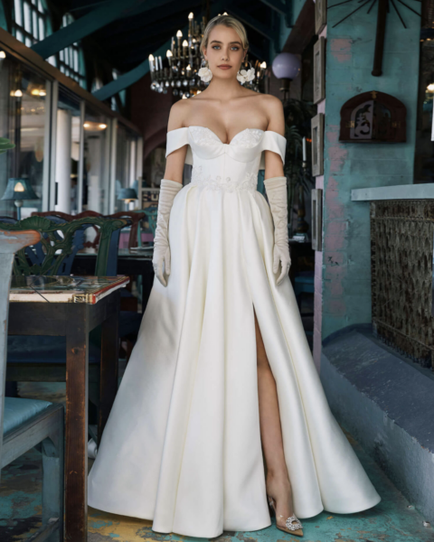 As a young girl, Elbeth was surrounded by the beauty of fabrics. She was inspired by the magic that took place as her aunts and mother brought beauty and grace to the garments they sewed. By the age of 12, Elbeth knew she was destined to study fashion. Now, over 20 years later, the reputation of this wedding dress designer is a testament to her ability to create the perfect garment. Brides looking for something different will fall in love with Elbeth’s enduring, Audrey Hepburn-like design aesthetic.