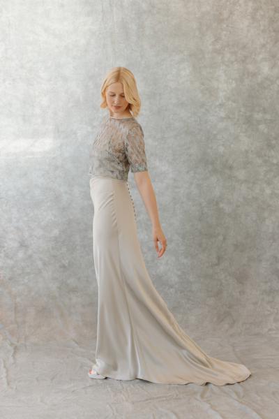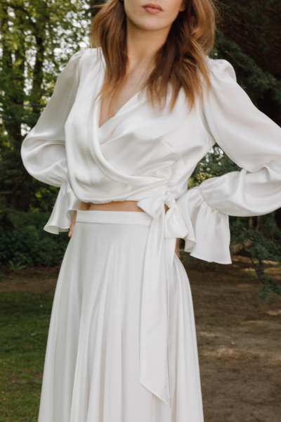 In 2023, Kate unveiled a collection of ethical silk nightwear made from silk off-cuts, showcasing her versatility and dedication to sustainability. This new line of nightwear beautifully complements her bridal collection, providing brides with an opportunity to extend the Kate Beaumont experience beyond their wedding day.
