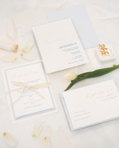 From the first impression on your wedding invitations to the final flourish on your place cards, every element is designed with intention and is elevated through thoughtful layers of hot foil, embossing, and tactile cardstocks; each one adding depth, texture, and a sense of quiet luxury. Your stationery should do more than inform it should immerse. It’s a moment of anticipation, a keepsake of your story, and a celebration of everything to come.