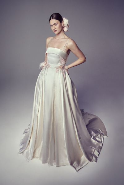 Hand crafted in the brand’s Atelier in Kent, all pieces are made using the finest European fabrics and accessories to create spirited bridal looks with a focus on attention to detail and exceptional craftsmanship.