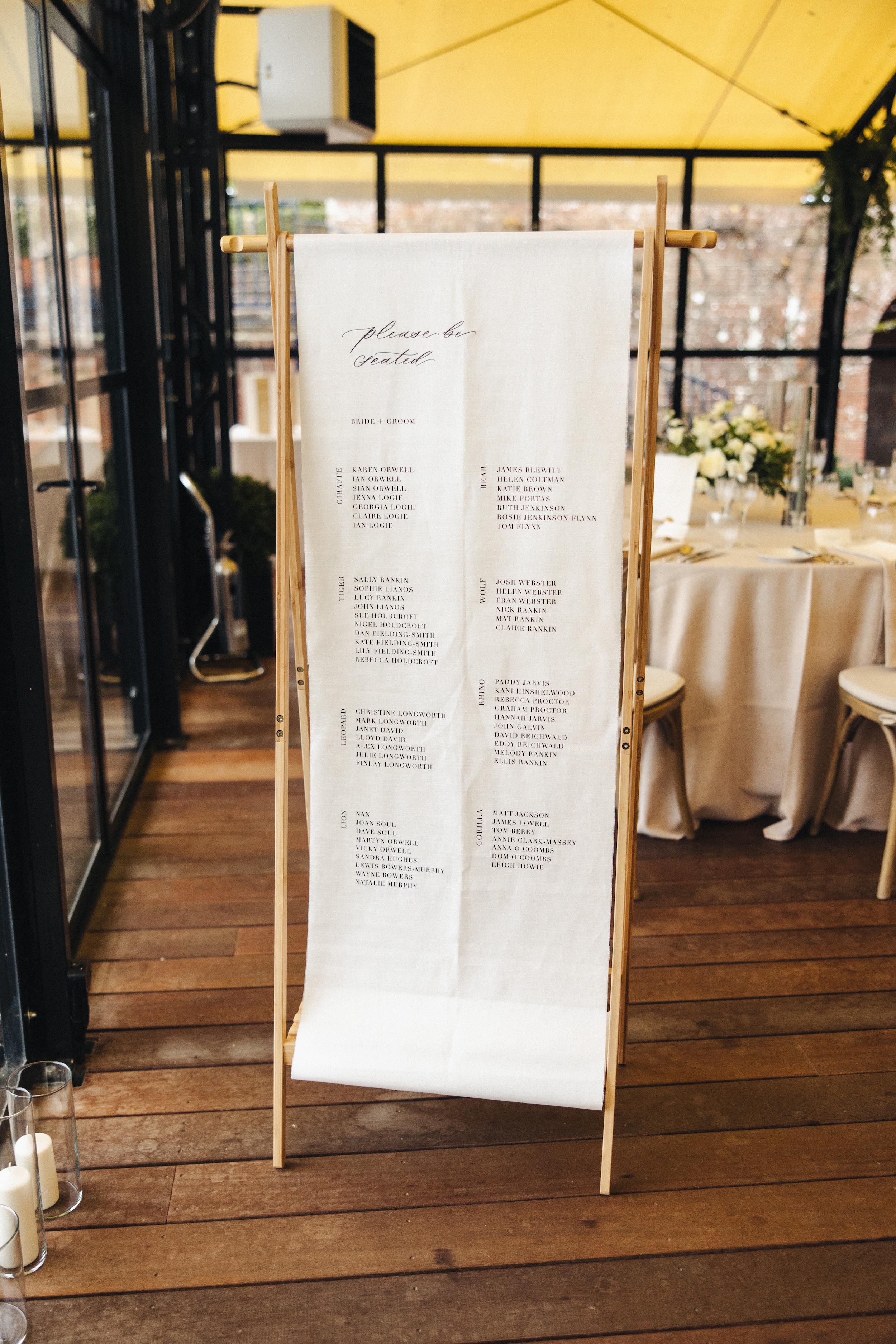 I love calligraphy and really wanted to include it in our wedding, I had been on a course with Heather of Leigh Calligraphy to try and do my own stationery but didn’t want to risk it so enlisted her help! She created our place cards, individual menus, table names, guest book signage and my favourite piece our fabric table plan. This wasn’t something she usually creates but we worked together to make it happen and I’m so glad we did, it was a talking point and one of my favourite features of the day.