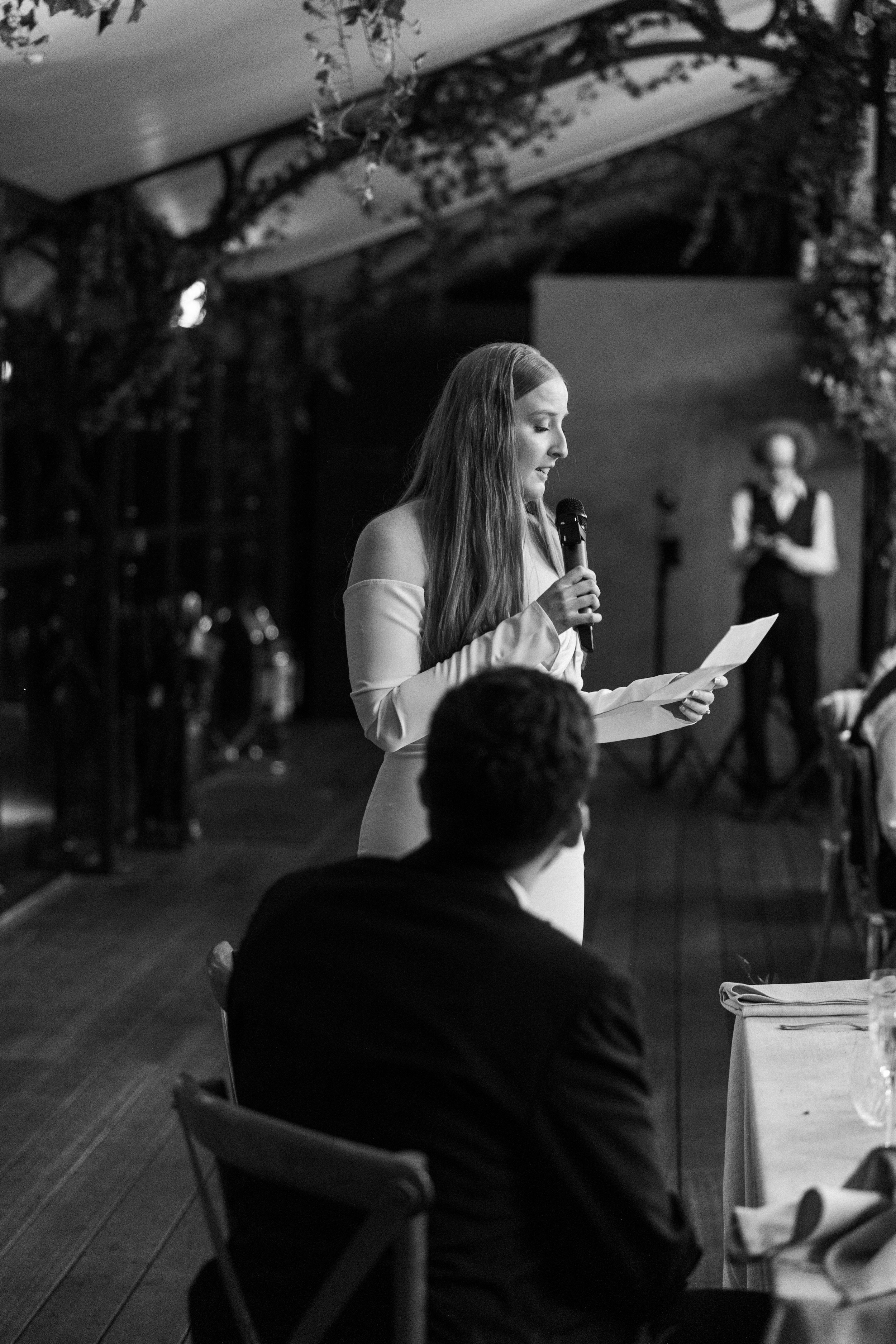 Talented Aimée planned the wedding herself, flexing her skills as a wedding planner. As founder of wedding planning business, One Oake, her organisational skills and attention to detail kept everything running smoothly. The day was effortlessly styled in pale greens and neutral tones too; florals were created by Love My Dress recommended supplier, Rosie Obeney Flowers, who elevated the spaces at the reserve and kept the arrangements seasonal and refined. Guests dressed in black tie and Aimée wore the chic and long sleeved ‘Winter’ gown by MWL Bride.