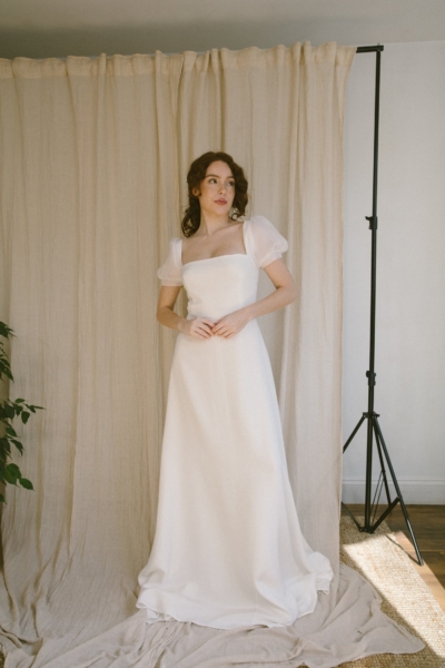 Our collection features British, female-founded designers who share our values of sustainability, ethical production and modern romance. Expect clean lines, sculptural silhouettes, and just the right amount of unexpected detail, bridalwear designed to flatter, elevate, and feel entirely you.