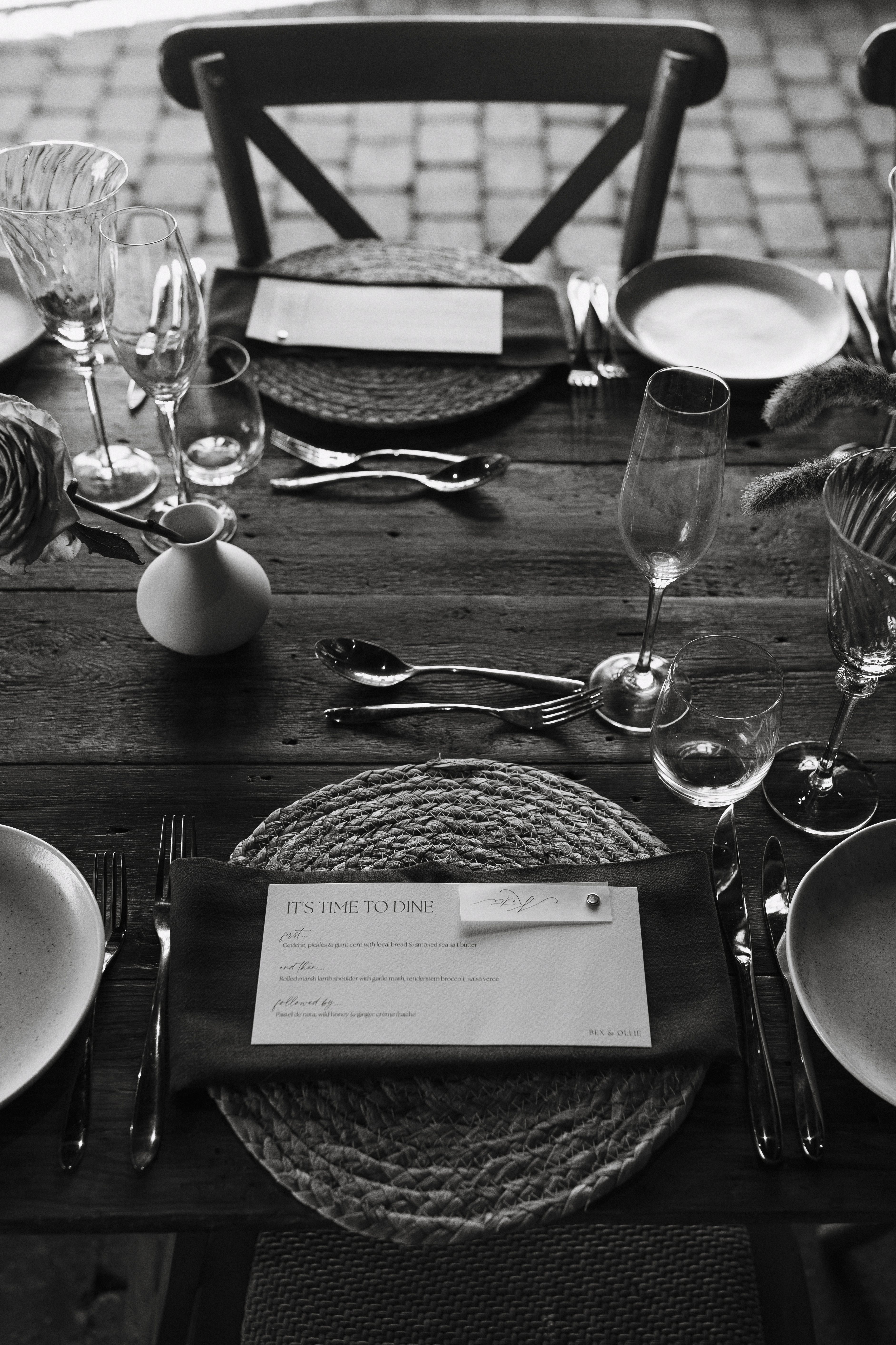 The couple shaped their day around both of their tastes, finding a balance between traditional moments and the playful, more unexpected touches that made the celebrations feel authentic and fun. Elmley’s landscape did a lot of the talking, so their styling stayed gentle and understated, with details that complemented the setting.